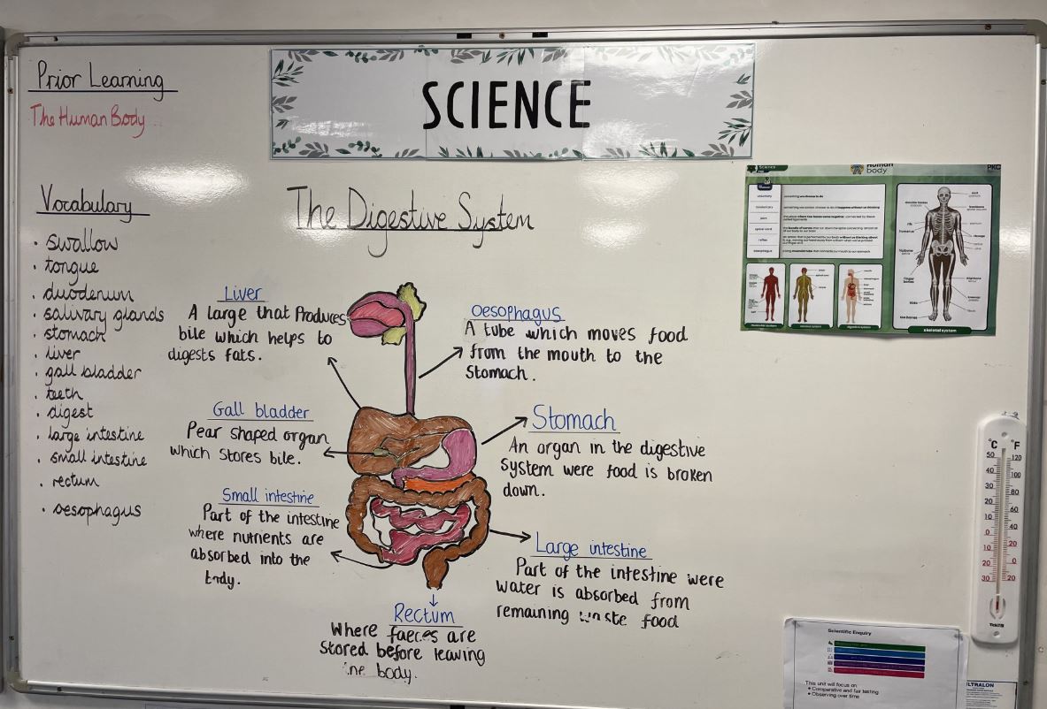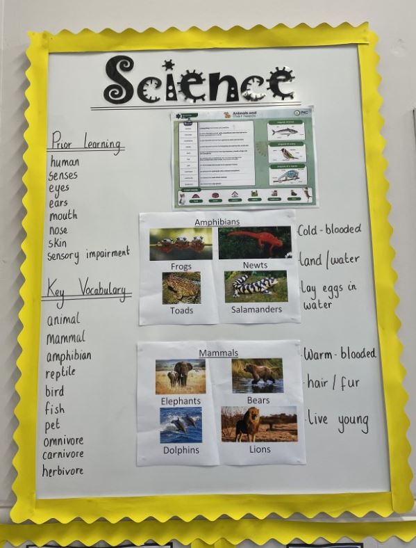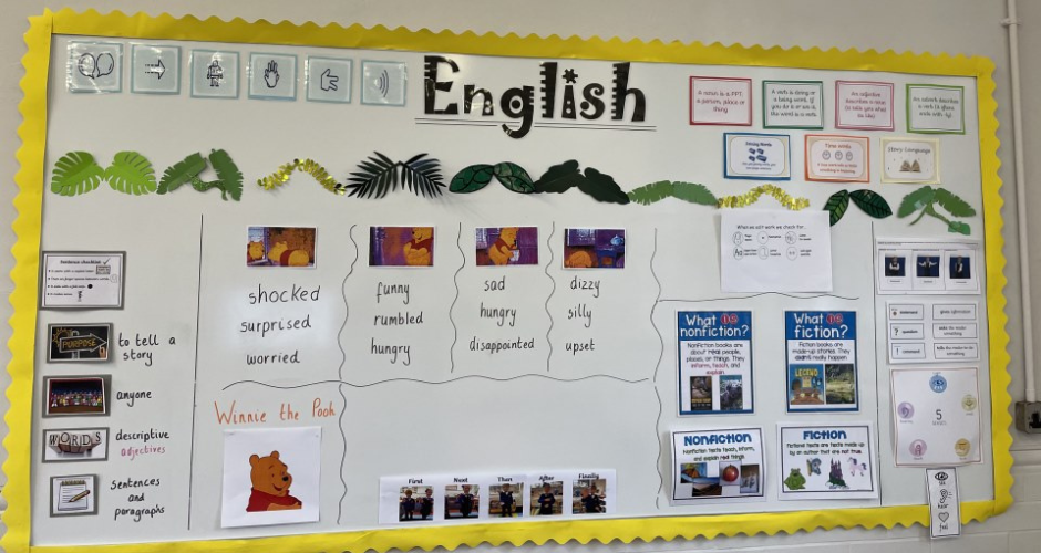 Each of our classrooms have working walls. These are a specific selection of displayed curriculum content - pertinent to the lessons, which teachers and pupils use to scaffold, reinforce, and consolidate learning. Each working wall is a teaching tool that are added to throughout a unit of work and show clear expectations to support learning.